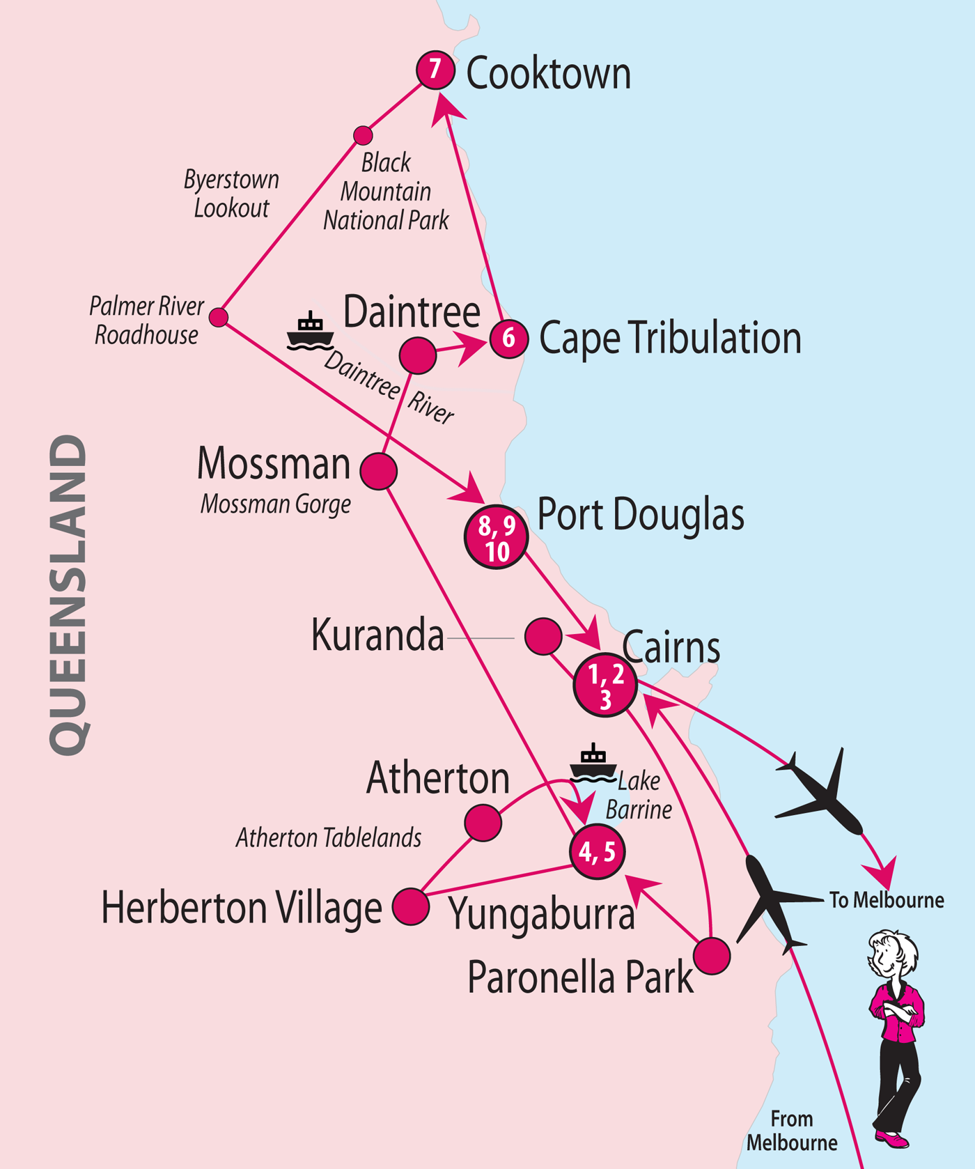 Welcome to Sisterhood Womens Travel. Meet your Tour Hostess and fellow travellers at the Melbourne Airport for your flight to Cairns. Upon arrival, we are met by our coach driver and start our visit to Tropical North Queensland with a Cairns city highlights tour, including St Monica’s Cathedral with its famous Peace Windows, Cairns Museum for a glimpse into the region's past, and a stroll through the lush Botanic