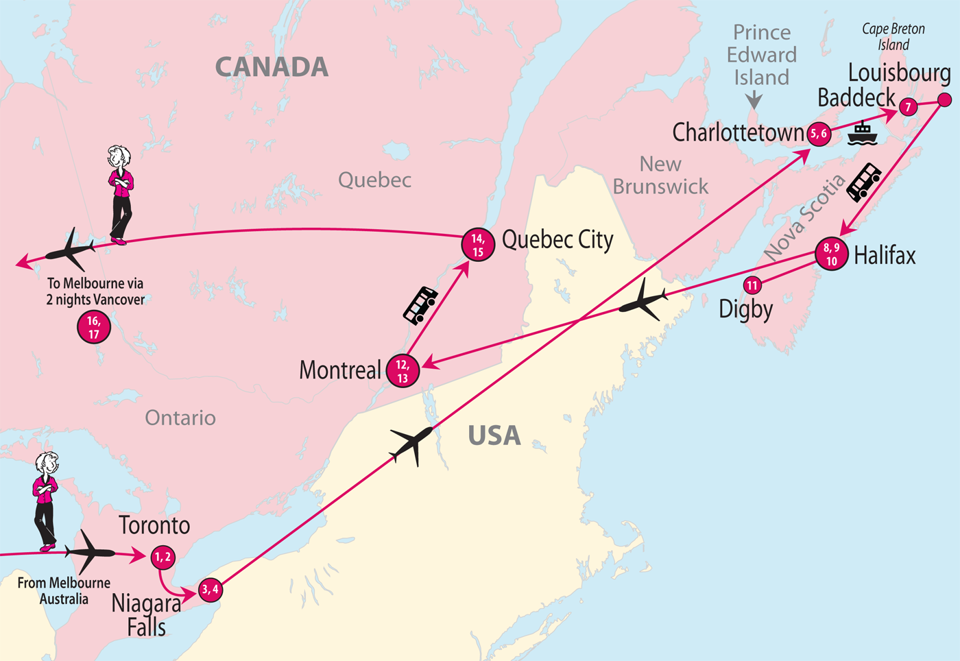 Welcome to Sisterhood Womens Travel! Meet your Sisterhood Tour Hostess and fellow travellers at Melbourne Airport for our flight to Toronto via Vancouver. Sit back, relax and enjoy the inflight entertainment as we head towards Canada. Upon arrival into Toronto we'll be transferred to our hotel.