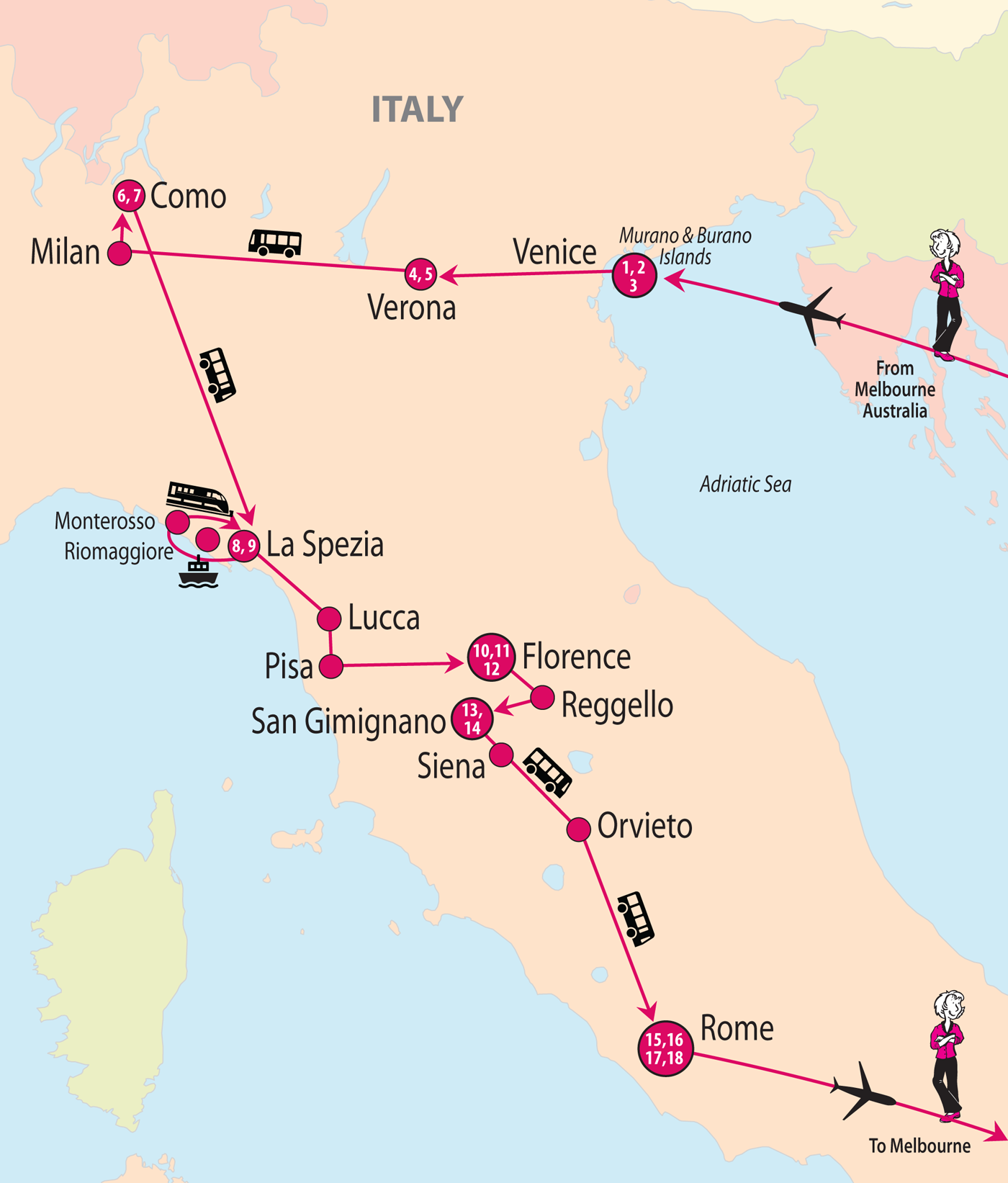 Meet your fellow travellers at Melbourne Airport for your flight to Venice Italy.
