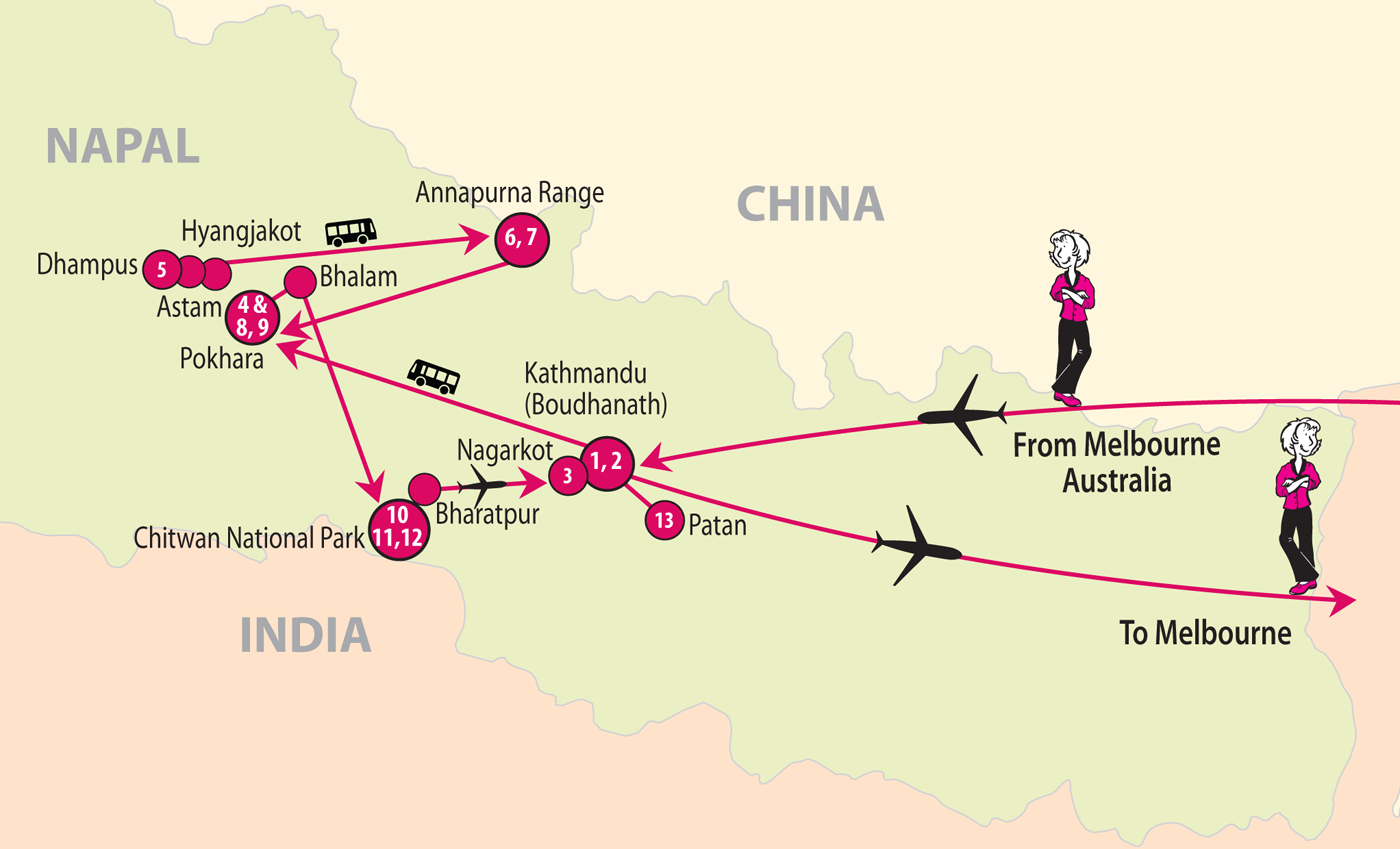 Meet your Hostess and fellow travellers at Melbourne Airport for your flight to Kathmandu Nepal.
