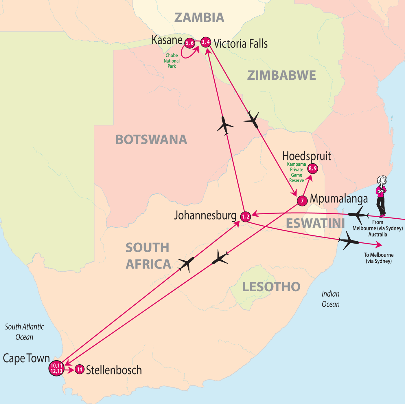 Join your tour hostess and fellow travellers at the Melbourne airport for our flight to Johannesburg.