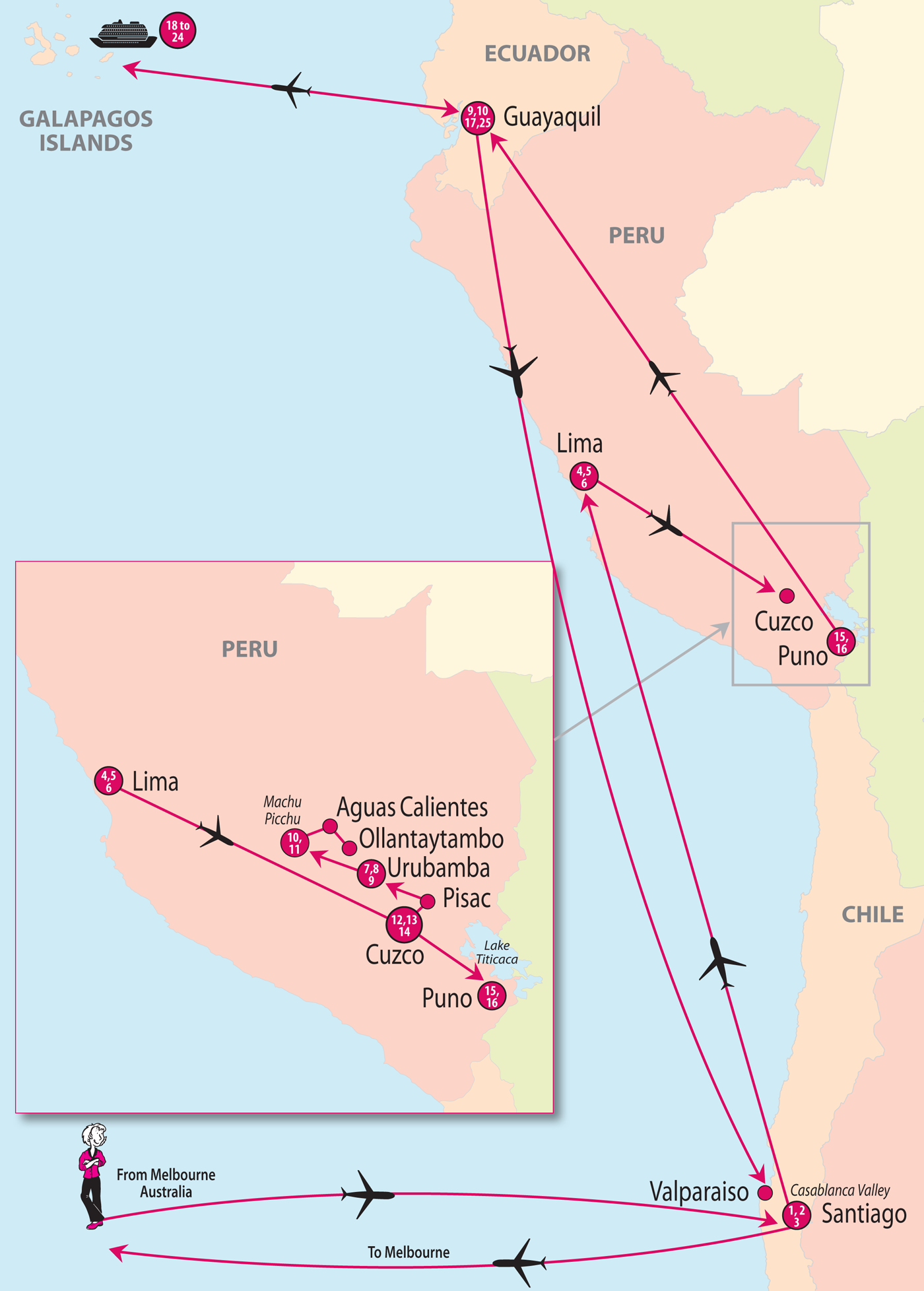 Today, we prepare for our exciting Galapagos cruise by flying from Puno to Lima (via Juliaca), then onto Guayaquil. We'll transfer to our hotel with the remainder of the day at leisure.